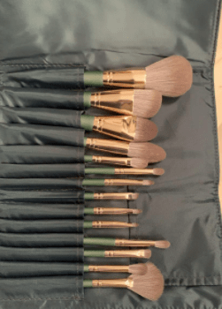 This is a nice set of makeup brushes. There are 14 brushes in this set. Everything that you could want and need. There are no loose hairs and the brushes appear to be well made. The handles are nice wood and fit my daughters hands. My daughter likes this set. This is a good set of makeup brushes especially at this price.