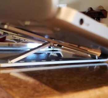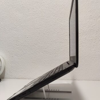 I looked at many different stands before purchasing this one. I use a thin 15″ laptop and was primarily concerned that the front hooks would come in the way of the wrist resting on the palm rest. My other concern was that the laptop would wobble because the stand is small (which helps because it fits easily in the side pocket of a book bag).