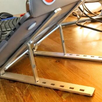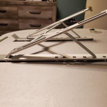 I really like how durable and simplistic this is. It weighs almost about nothing it comes in a cute gray pouch. There's no parts to assemble it's durable Its made of metal. You can use it for more than just your laptop. It works well with a tablet, a book, and I'm sure you can even use it for landscape mode for a phone, you don't have to open it all the way for it to work. It's very versatile and definitely a must-have for trying to ventilate a laptop and get a ton of more different types of uses at it while you're on the go or in the kitchen. Absolutely must buy!
