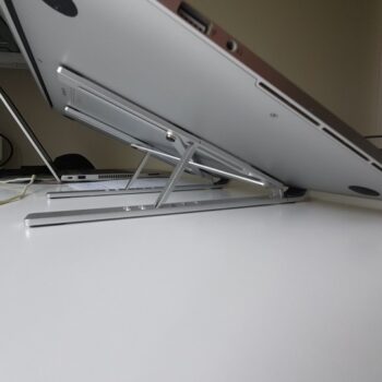 This is a pretty fancy laptop stand! Works very well, and is very handy. Unfortunately, I had to return it because I did not double check my desk dimensions before ordering it [not as much writing table space as I’d like if using this]. It is a good product, though, and if I had a larger table, I would buy this item again!