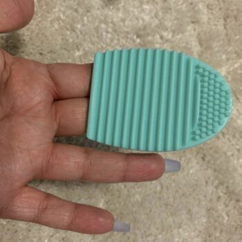 This is great! It’s like a washboard for your makeup brushes. I just washed mine and they are almost like new again. I used to just wet them, soak them in a small cup with water and dish soap, and then I’d have to rub rub rub forever on a cloth or paper towel. This was so fast.