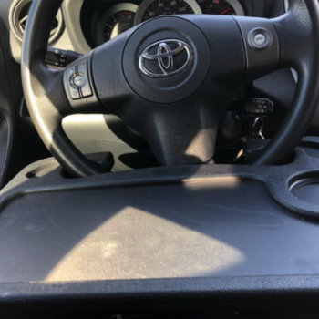 Measuring 11 inches across the steering wheel hold, our tray snugly fits the steering wheel of most modern cars. No balancing on your knees or anything. Whether you’re watching a movie to kill time or are finishing up a weekly report for work, our tray will support you until the end.