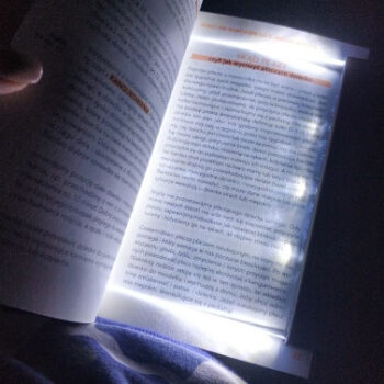 I like how it makes the page glow instead of having a hanging light above your book which is more noticeable in a room you wish to keep dark where others might be sleeping. A couple of things I was curious about... First, off I thought I might be able to place the panel behind the page I was reading so that it would glow thru essentially, but that did not work the best. You really need to place the panel ON TOP of the page you’re reading. But the good thing is you really don’t need to flip the panel from left to the right page, I found that keeping the panel on the right side it would still provide sufficient lighting to the left side. So you don’t have to move the panel as much. And for larger books, the panel may not cover the entire page but the lighting fans out so it will adequately illuminate the entire page so I found the size of the panel to be just fine. I really like this light :)
