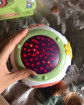 My baby just loves staring at the colorful twinkling stars and moon projected on to the roof. Some reviewers mentioned the quality of plastic is cheap and not strong enough - but I completely disagree. It is sturdy enough and does the job perfectly - unless you leave it in-front of the kid and ask them to break it.