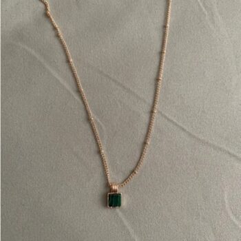 Store in a dry place in a ziplock bag. Wipe with a soft cloth. To prevent your skin from turning green, coat the necklace with clear nail polish before wearing.